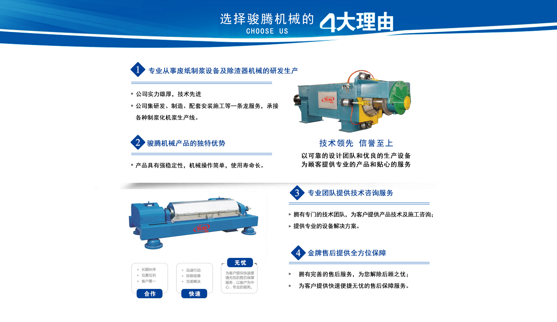 安丘市駿騰機械制造有限公司位于中國風箏之都濰坊南35公里,座落在青云湖畔,是具有活力的安丘市興安街道工業(yè)園。 依托風箏之都完善的工業(yè)基礎和發(fā)達的機械制造業(yè),公司致力于廢紙制漿設備及除渣器機械的研究與制造。 公司始終堅持以市場需求為先導,客戶利益為目標,嚴格執(zhí)行國家技術及行業(yè)標準,保證產品品質,提供專業(yè)服務,用專業(yè)的產品與真誠的客戶實現共同發(fā)展,是我們終生奮斗的目標。讓我們攜手共進,創(chuàng)造美好明天。 我們熱情期待著您的光臨指導,洽談業(yè)務! 查看更多>>